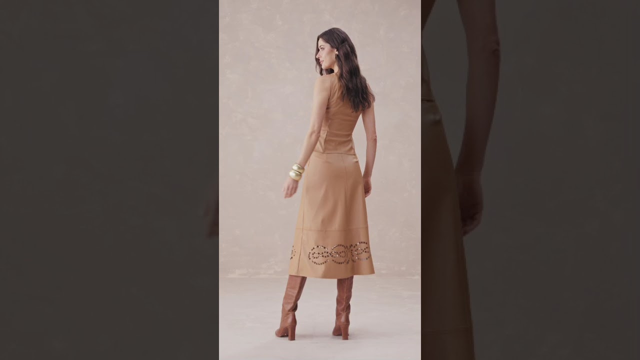 A Saia midi com recorte vazado é a escolha perfeita para quem busca um toque moderno e sofisticado no visual. Confeccionada com tecido de alta qualidade, proporciona conforto e caimento impecável.